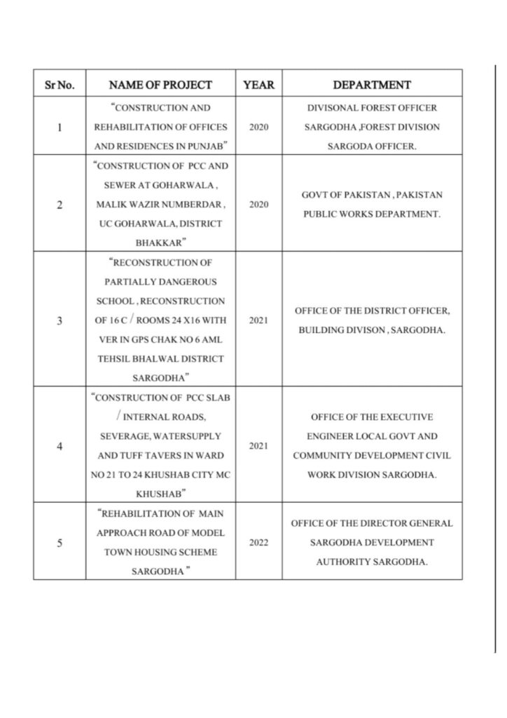 Shawal Traders has successfully completed various infrastructure and development projects across Punjab, including construction, reconstruction, and rehabilitation works for government departments and local authorities from 2020 to 2022, contributing to urban development and public welfare.